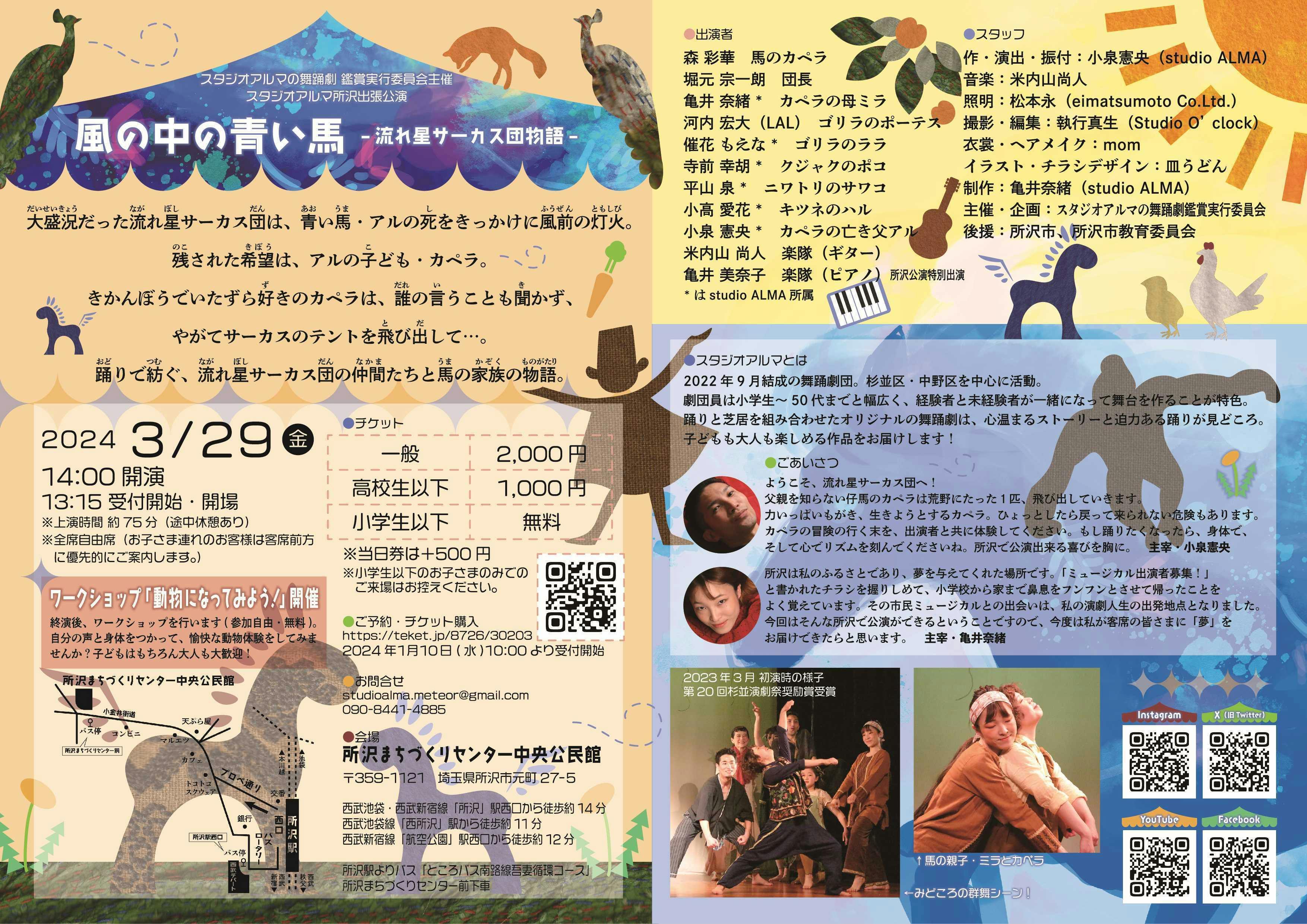 2024年3月 スタジオアルマ所沢出張公演「風の中の青い馬 -流れ星サーカス団物語-」上演!!