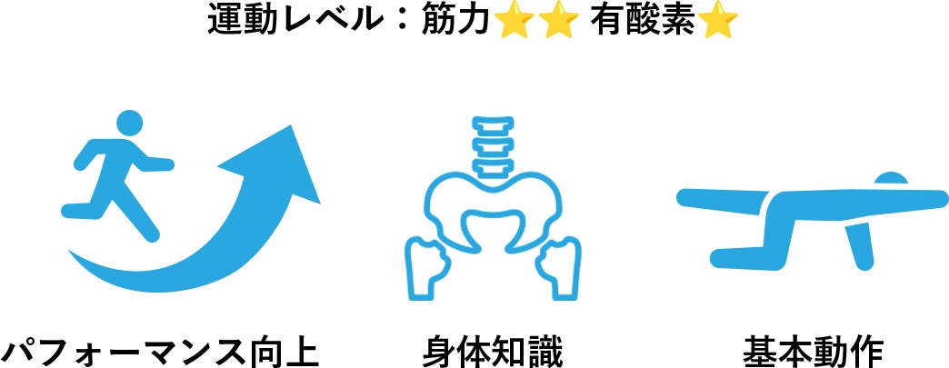 初心者から参加できる自重を中心としたトレーニングプログラム。腹筋やスクワット・腕たせ伏せなどを中心としたトレーニングメニューとなっており、身体の基礎となる筋肉や体幹を安定させ、毎日気持ちよく動ける、美しくしなやかな身体をつくっていきます。