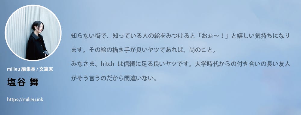 ご覧いただきありがとうございます。私は大阪を拠点にライブペインティング/壁画制作を行うフルタイムアーティストのhitch-ヒッチ-です。これまで15年間にわたって国内外で作品を描いてきました