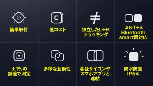 ・ペダルタイプのパワーメーター。幅広い自転車と互換性があり、様々なデータを±1%の誤差で測定。