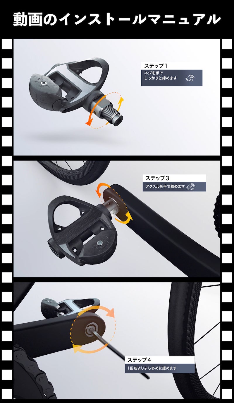 ペダルをカスタムするのと同じ要領でクランクに取り付けるだけなので、すぐに使用ができます。取付のためのインストールマニュアル動画がオンライン上でございます。