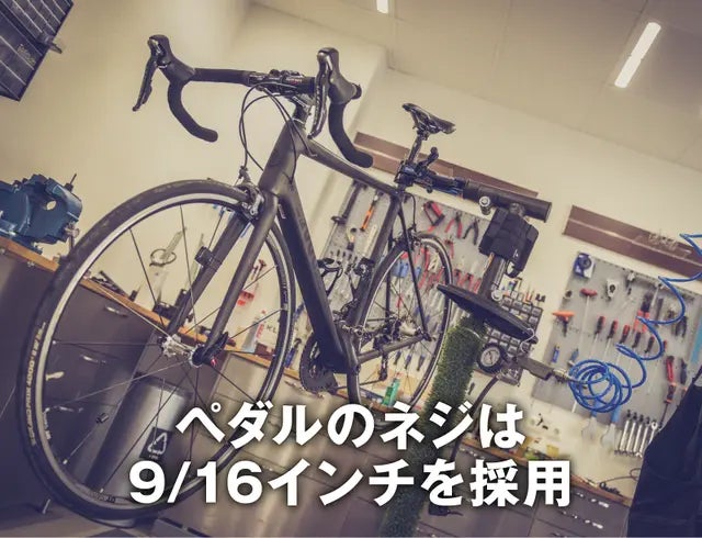 【iQ2 POWER METER】のペダルのネジはロードバイクやマウンテンバイク、クロスバイクなどのクランクと同じ一般的な9/16インチを採用しています。