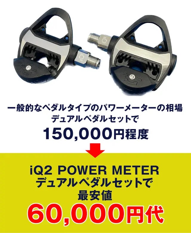 また一般的なペダルタイプのパワーメーターだとデュアルペダルセットで価格は約15万円程度が相場ですが、【iQ2 POWER METER】はなんと、デュアルペダルセットで7万円代。