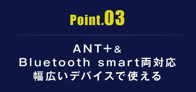 ANT+&Bluetooth smart両対応で、各社サイコンやスマホアプリと連結可能。