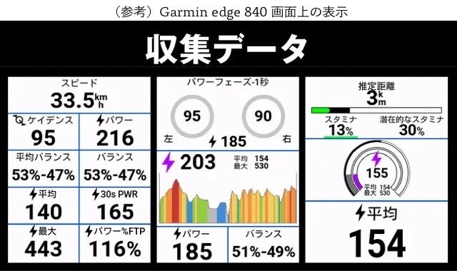 【iQ2 POWER METER】で測定したデータはサイコンで分析して表示され、数値を見ながら一定のペースの回転数で漕ぐと疲れにくくなるうえ、適切なギアチェンジができるようになると平均スピードも向上します。