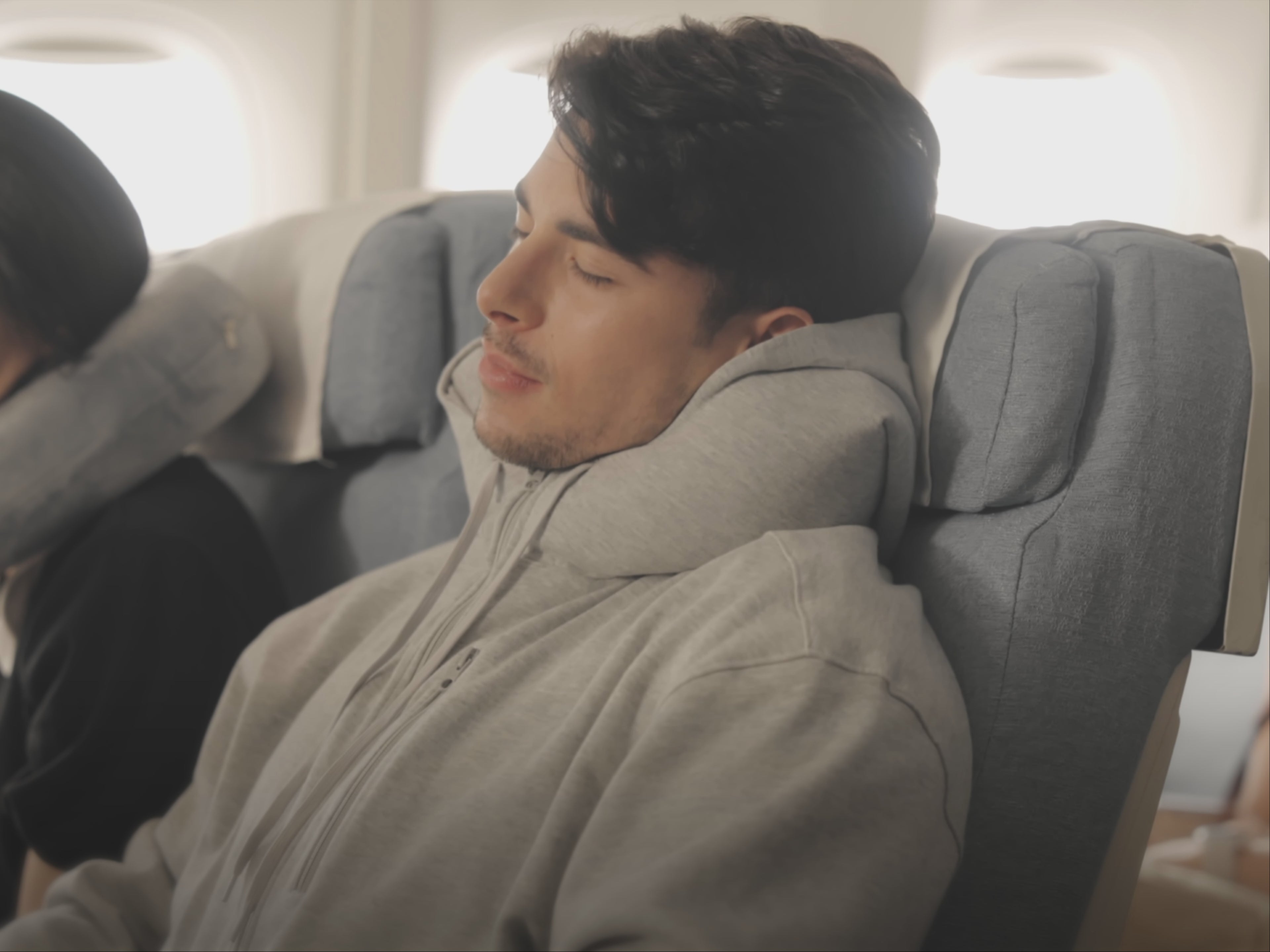 「私服のパーカーとしてもおしゃれですし、飛行機に限らず、バス移動、船移動すべて短時間でも