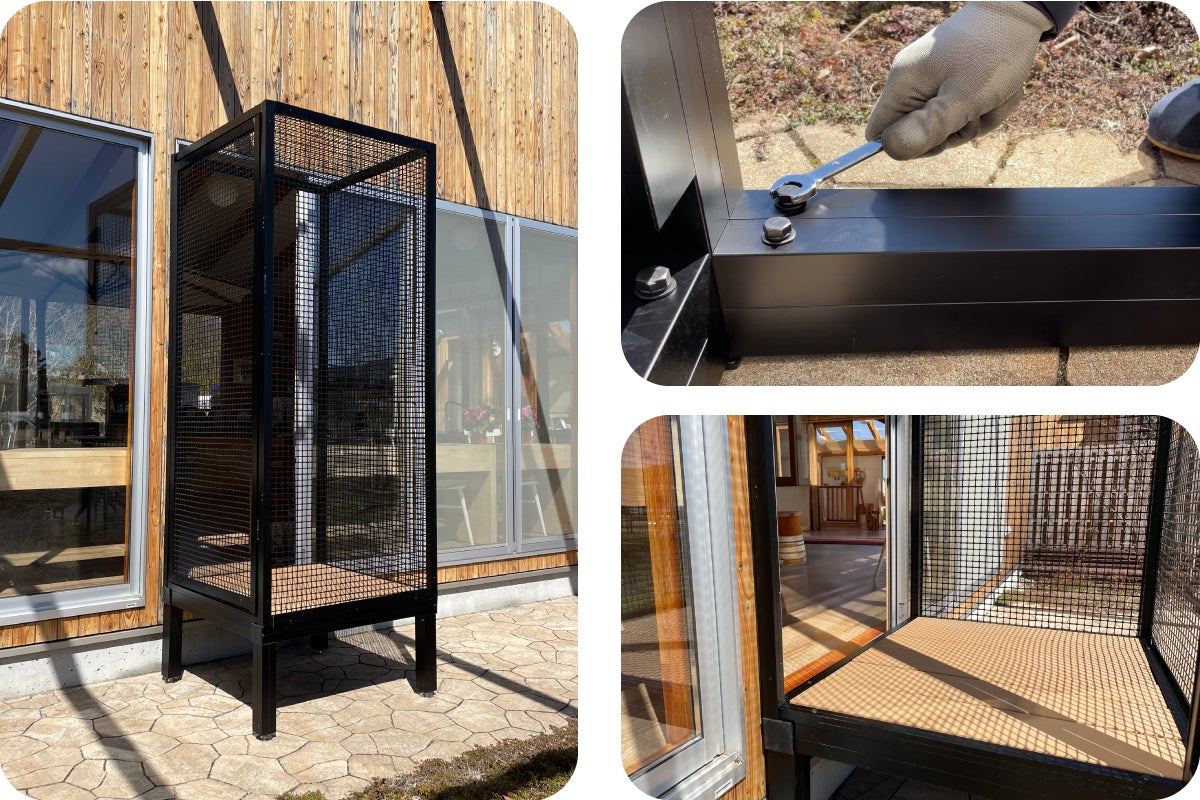 「こもれびキャティオ」は組立てられるセットになっているので、ご自身で設置していただけます。また、組立方法もとてもシンプルです。