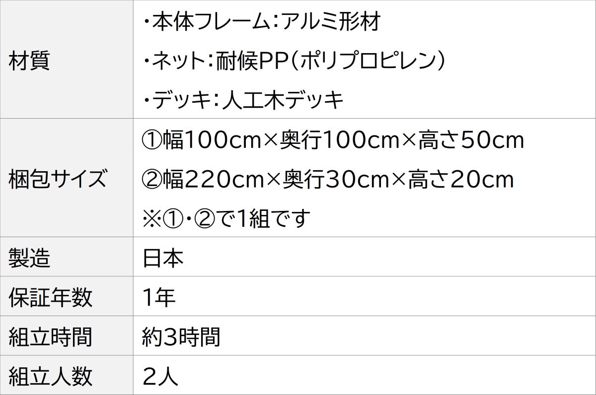 テラスやウッドデッキに置けるシンプルタイプです。