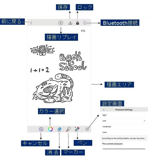 ※専用ボールペン側に「太さ調整」などのボタンはありません。