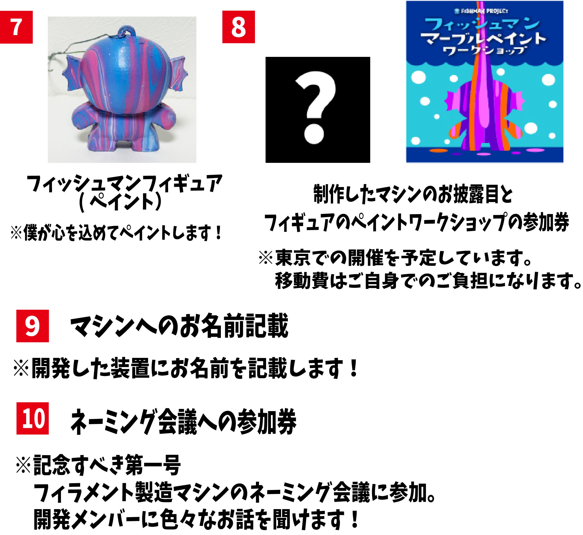これを実現するために今回は、プロジェクトの一番最初として、海洋プラスチックという不要なゴミから、3Dプリンターのフィラメントを生成する装置を開発し、フィッシュマンの再生利用フィギュアを作り、ペイントワークショップを開催したい!そのための開発資金を集めるため、どうか、是非力を貸してください!