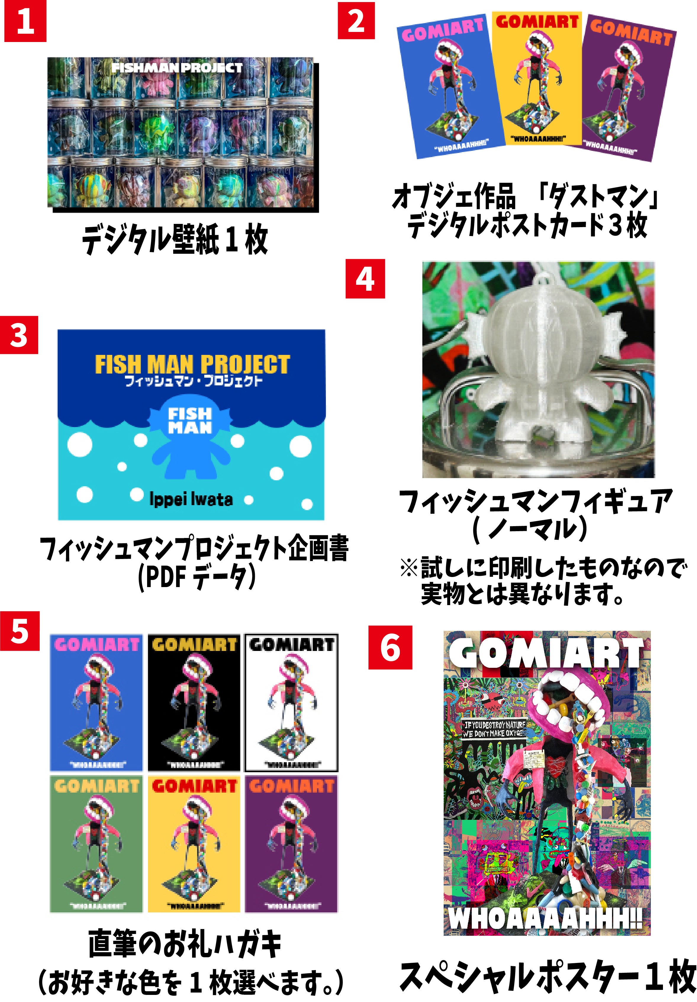 こんな感じでアート作品に取り組んでいる私ですが、今回クラウドファンディングに挑戦しようと思った理由は、海ゴミ問題を伝えるため海から陸に上がってきた半魚人という設定のキャラクター「フィッシュマン」のコンテンツを作り、環境問題の認知と共に、海洋ゴミを資源として利用できるサステナブルな社会を目指す「FISH MAN PROJECT」を実行したいからです。