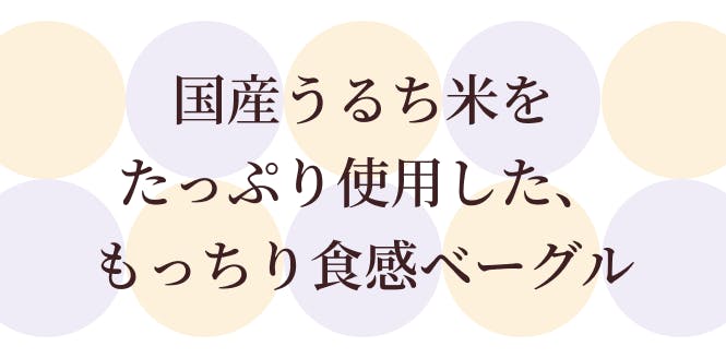 国産うるち米と小麦粉を配合することで生まれた、一度食べると病みつきになる”もっちり食感のベーグル”。某有名ベーグル店にて3年間の修行に加え、6年間のレシピ配合の試行錯誤を経て辿り着いた絶品モチっと食感ベーグルをぜひ、お手に取ってみてください。
