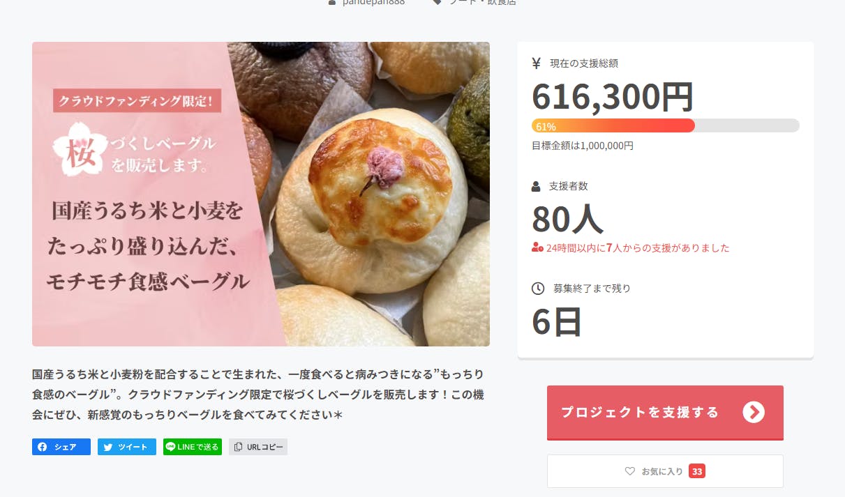 今回開業3年目となるタイミングで、クラウドファンディング限定リターン品として、ノベルティグッズや桜の季節限定ベーグルを販売させていただくことといたしました。