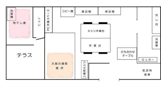 • 設備の見直し。 4月24日、カメラマンさんと同日、業者さまに建物を見てもらい、設備見直しを図りました。 ① 犬服の撮影場所について 撮影に使うには現状、主に壁や床が汚いのでこの部分だけ内装を施すことに。 また、作業場がすぐ隣りになるので、撮影の邪魔にならないようカーテンレールで2重にして、開閉カーテンを付けることを模索しています。 ② 作業台について 現状のレイアウトではメインとなる作業台やミシン作業台の配置が椅子を並べると、あまりに幅が狭かったことから引っ付けることに。 両サイドに椅子を配置し、作業フローに合わせた導線に替えました。また、来客に背を向ける事になるのと作業がまる見えになるので、出入り口の方はパーテーションを置くことにしました。 工業用ミシンは少し他のミシンと比べ幅をとるので当初のレイアウト位置ではなく、入り口付近のパーテーションに引っ付けることに。 ③ 受付・事務処理スペース 打ち合わせテーブル側付近に確保する予定です。ひとまず書棚を減らしました。事務処理デスクをどこに配置するかは今思案中です。 ④ 配送物 倉庫部分 天井から水漏れがあるようなので、この部分も少し内装工事が必要に。   生憎の雨の中、カメラマンさんと業者の方には大変ご足労おかけしました。 そしてとても勉強になるヒントをいただきました。次回お呼びした際は、もう少し段取りを整えた形で効率の良い進捗にしたいと思っております。   もっと見る