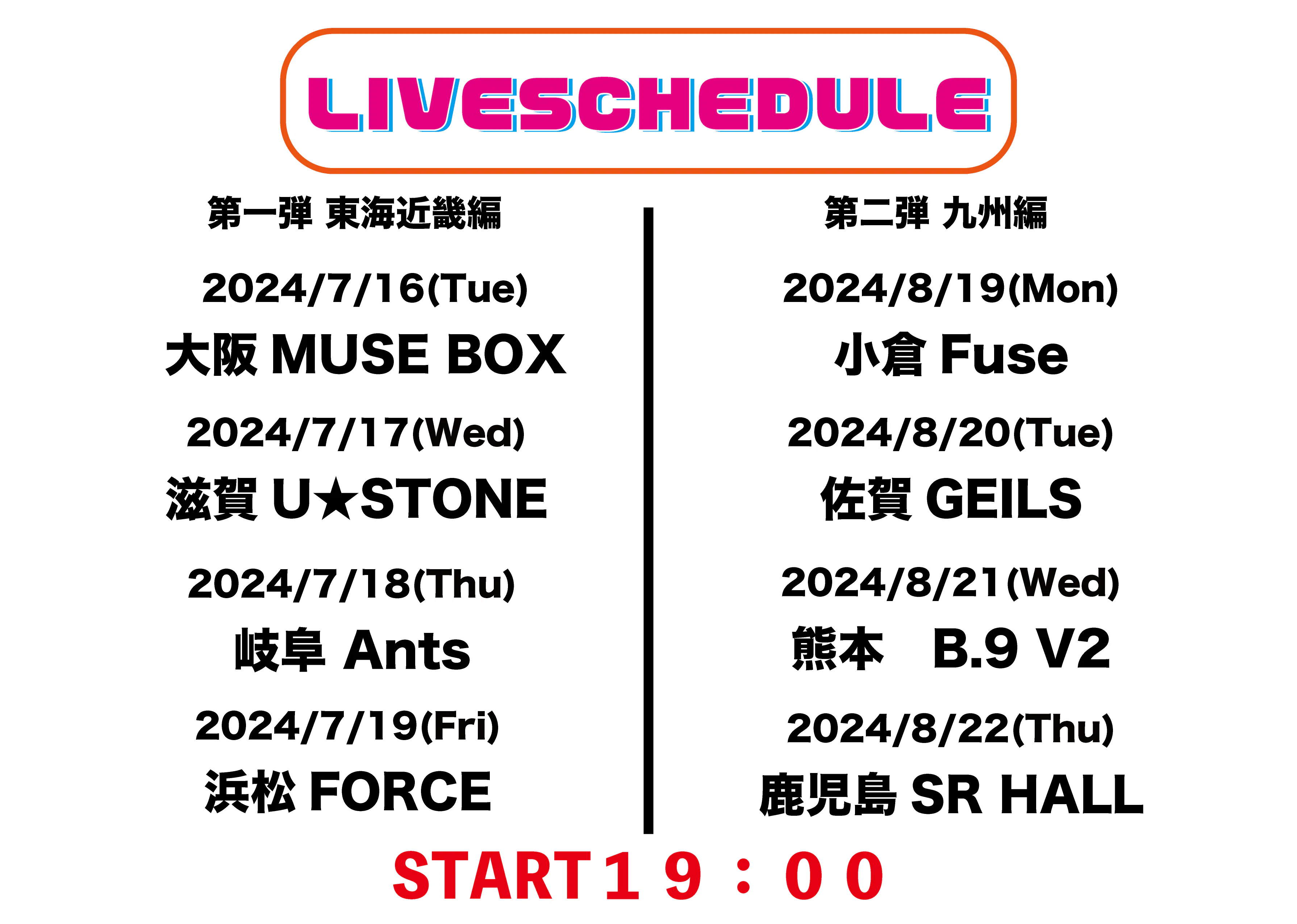 8月には 19日福岡(小倉)、20日佐賀、21日熊本、22日鹿児島でライブを敢行します。
