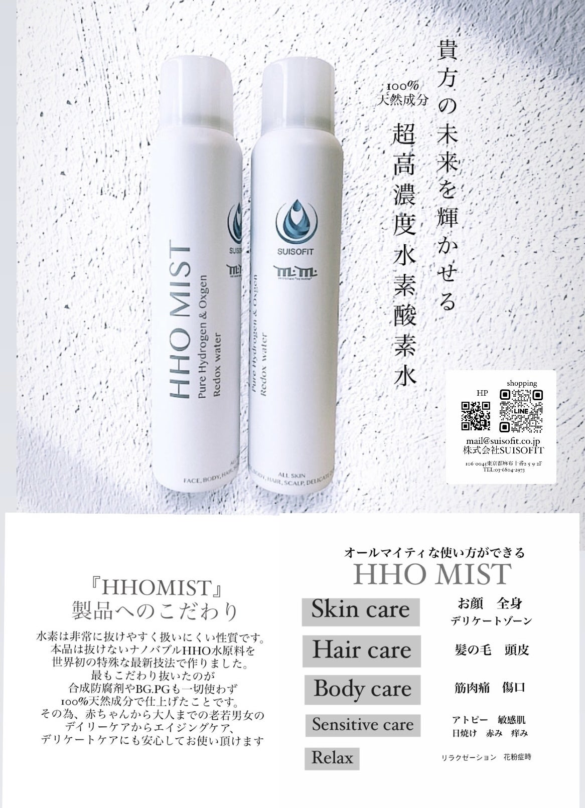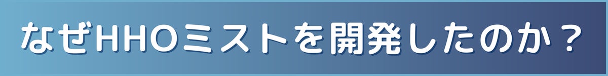 今回、このミストを開発したのは、このHHOの力、有効性をより多くの方に手軽に感じてもらいたいからです。
