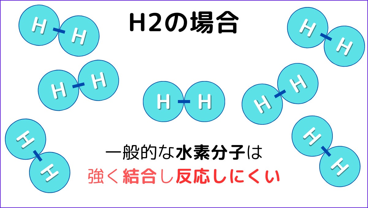 水素は原子(水素イオンと電子)状態にならないと反応しないのです。