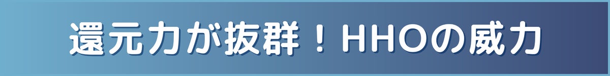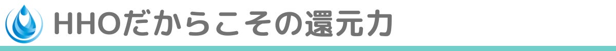 水素濃度が高いということは、つまり抗酸化物質が多いということであり、それだけ「還元力」が高い、ということになります。ここが、H2とHHOの大きな違いとなります。