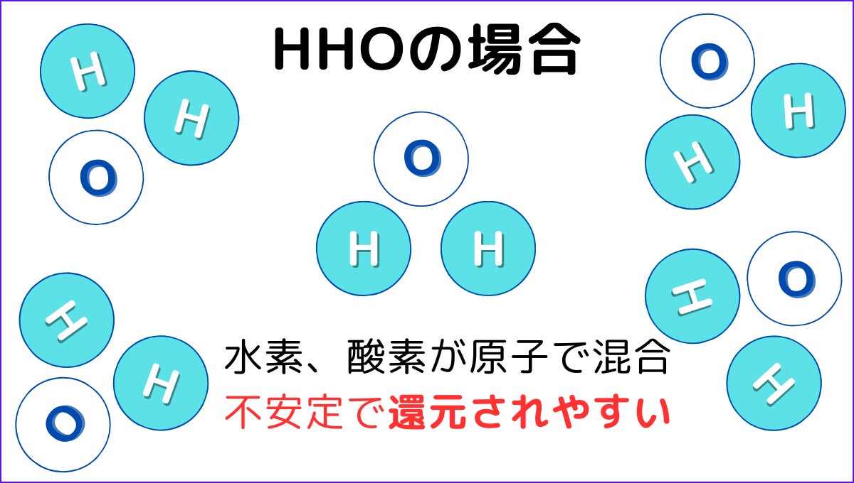 この動きをより活発にしているのが、水素原子(H)という状態となっているHHOということになるわけです。
