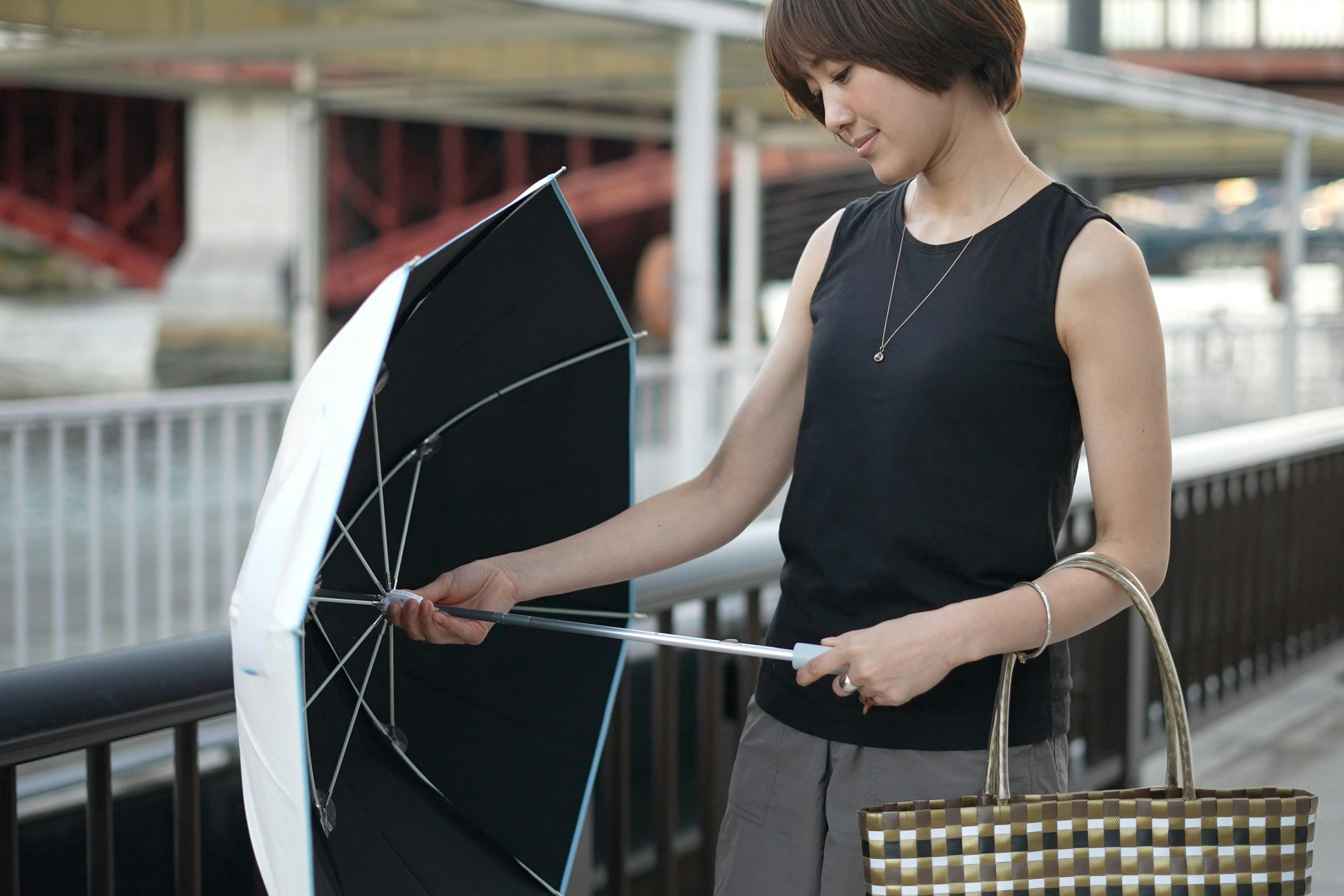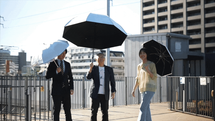 「大阪ガスが開発した新素材SPACECOOL〈スペースクール〉で日傘を作ってください」というオファーです。そこですぐに思いついたのは以下の3点です。