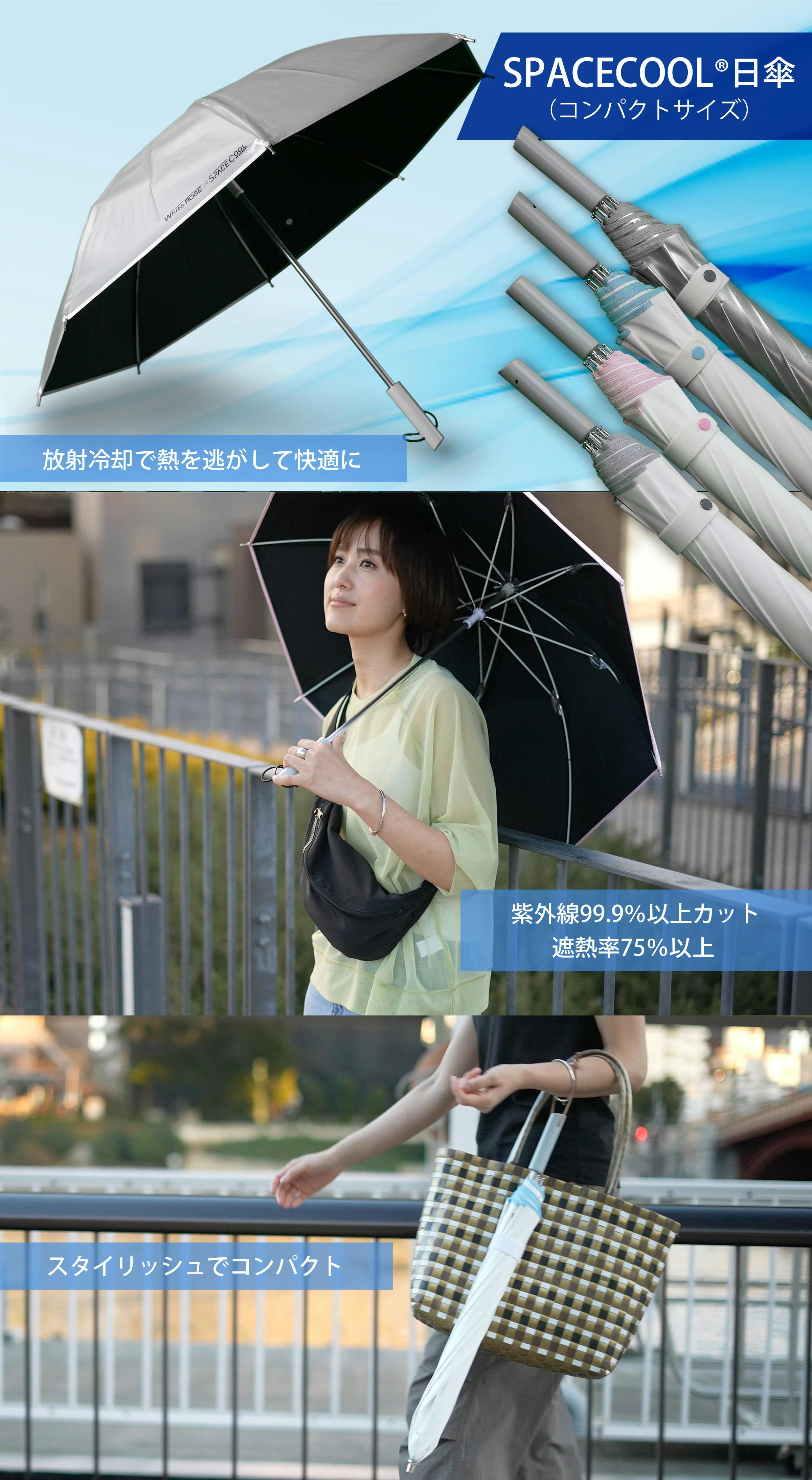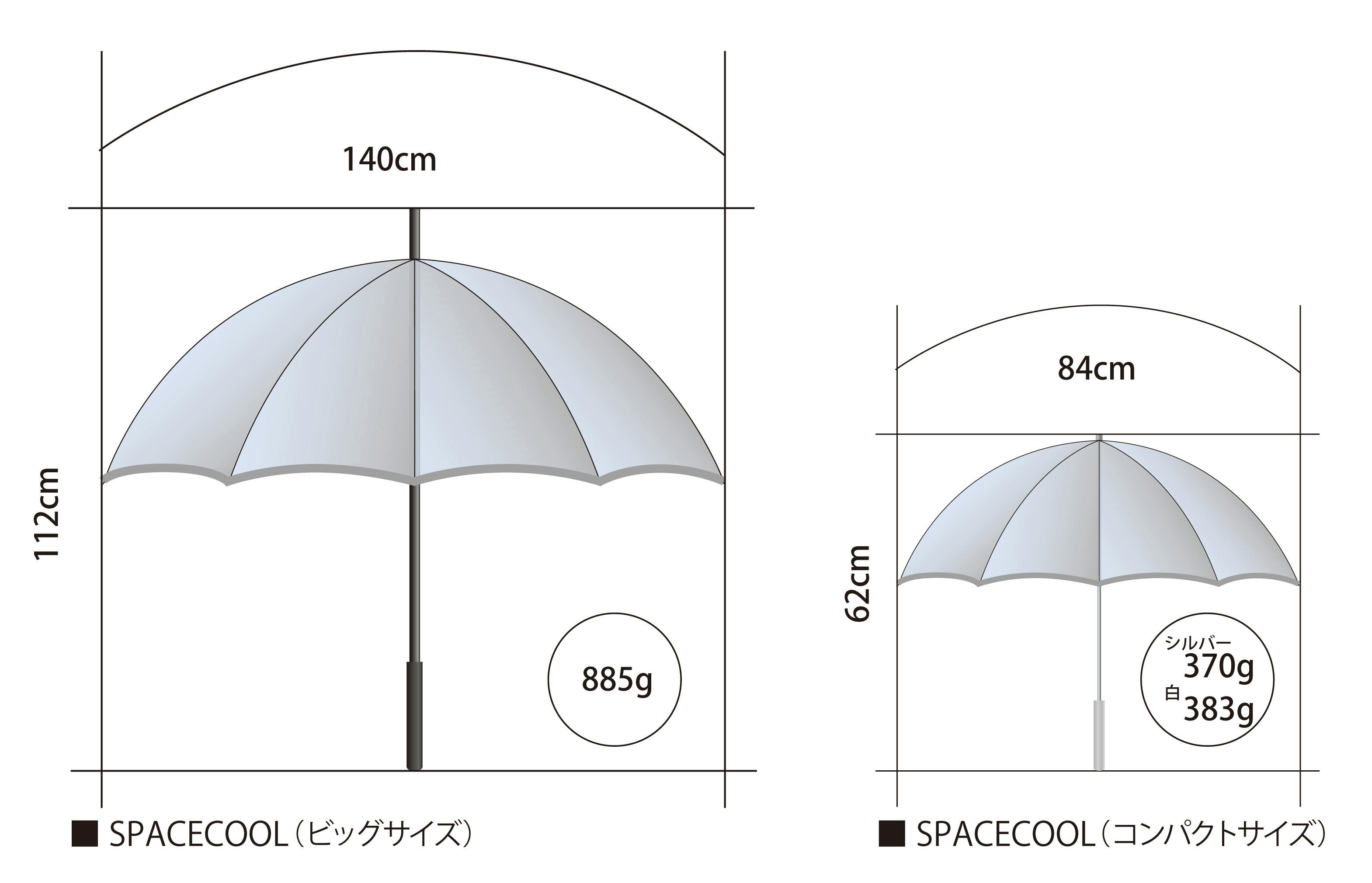 今回は「SPACECOOL®日傘」をコンパクトサイズとビッグサイズの2種類をご用意。
