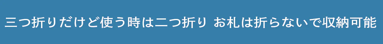 お札は折らないで収納可能です。三つ折り財布は札入れが長い事が多く奥までしっかり入れる事が難しいです。場合によってはお札の角が折れてしまう事も。