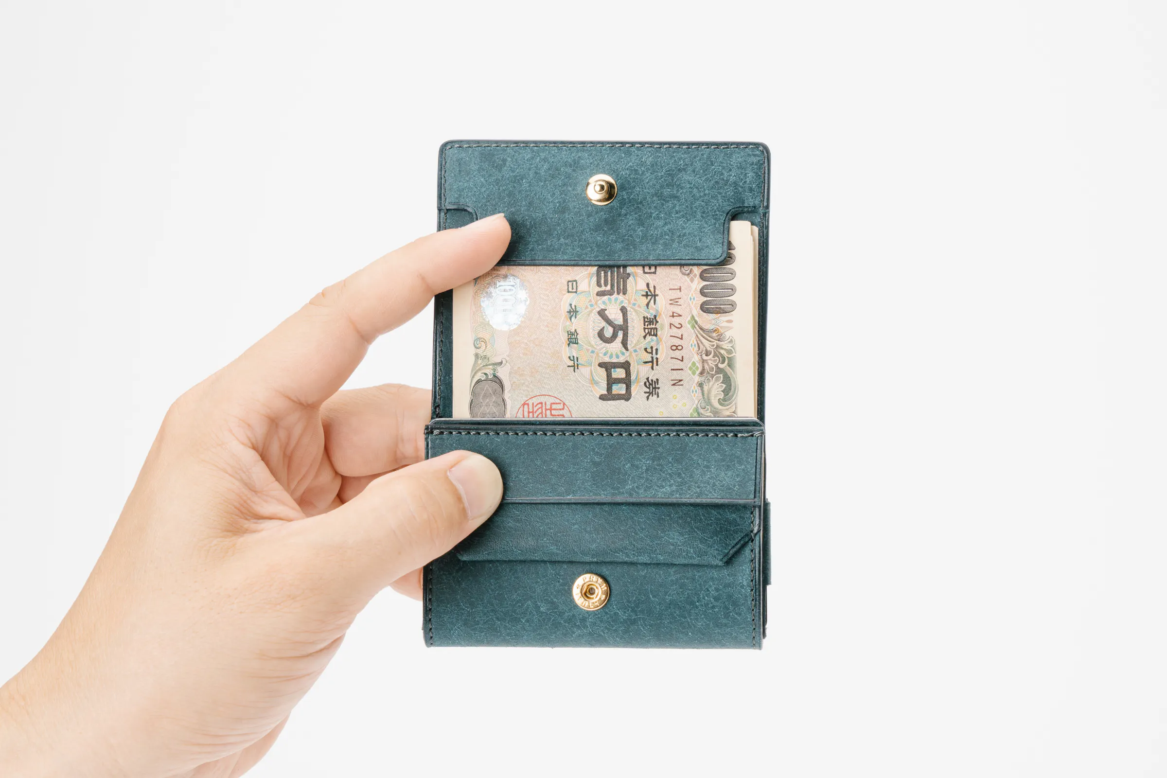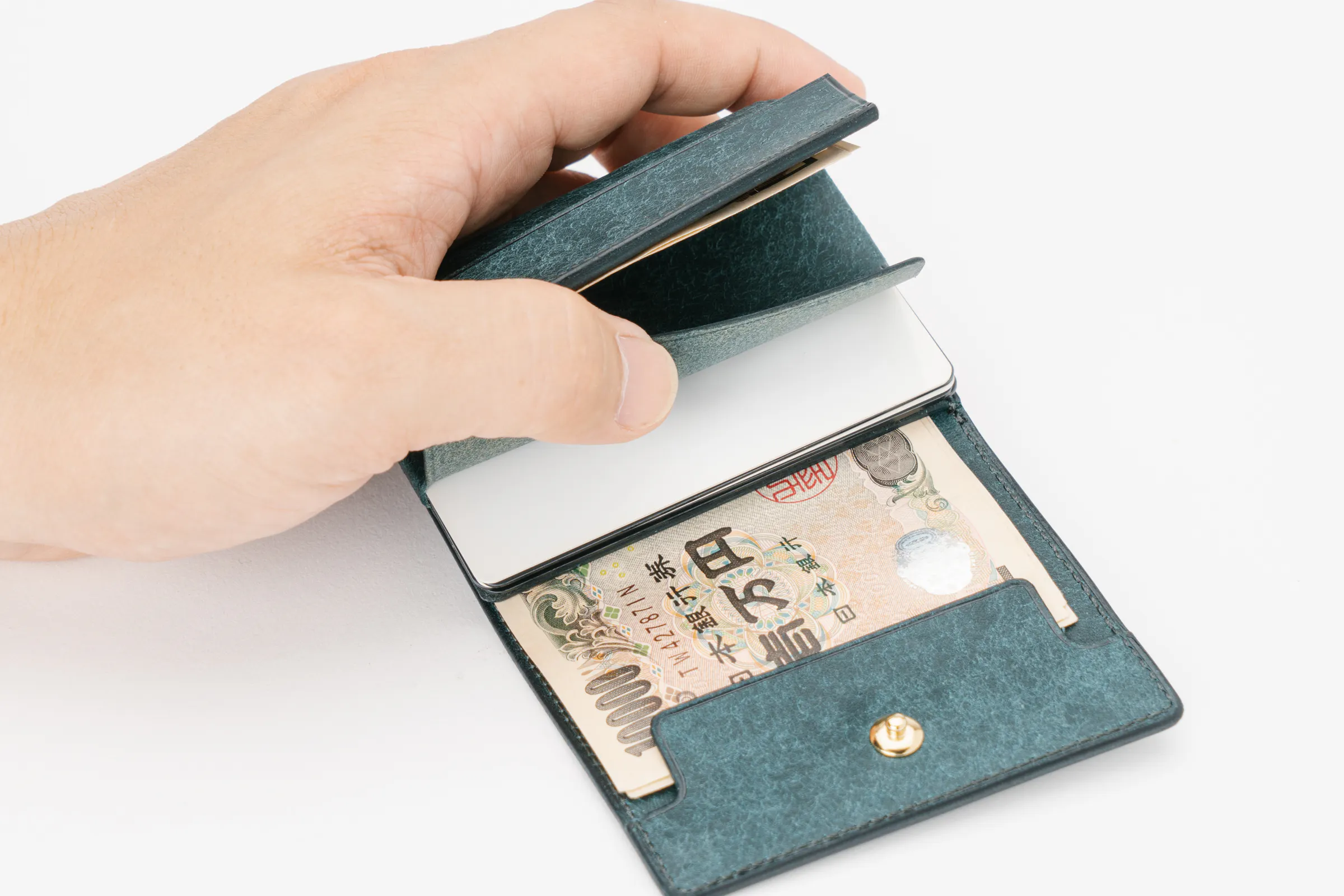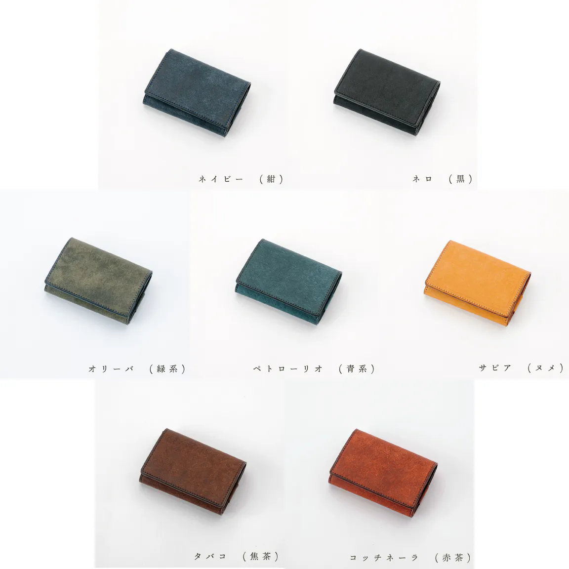 昔から受け継がれた技術と新しいアイディアを融合させ最小クラスまで昇華させた小さく薄い三つ折り財布です!