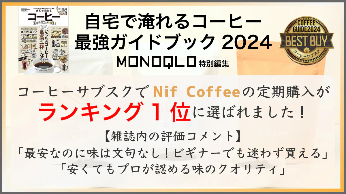 ●コーヒームック本【自宅で淹れるコーヒー最強ガイドブック2024】※でコーヒー豆の価格、品質、選びやすさが評価されコーヒーサブスク部門1位(BEST BUY)に選ばれました! ※晋遊舎 MONOQLO特別編集