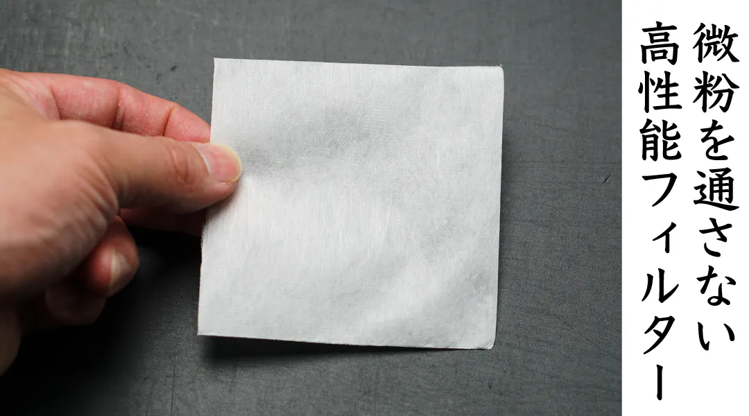 こだわり2:微粉を通さない高性能フィルター使用