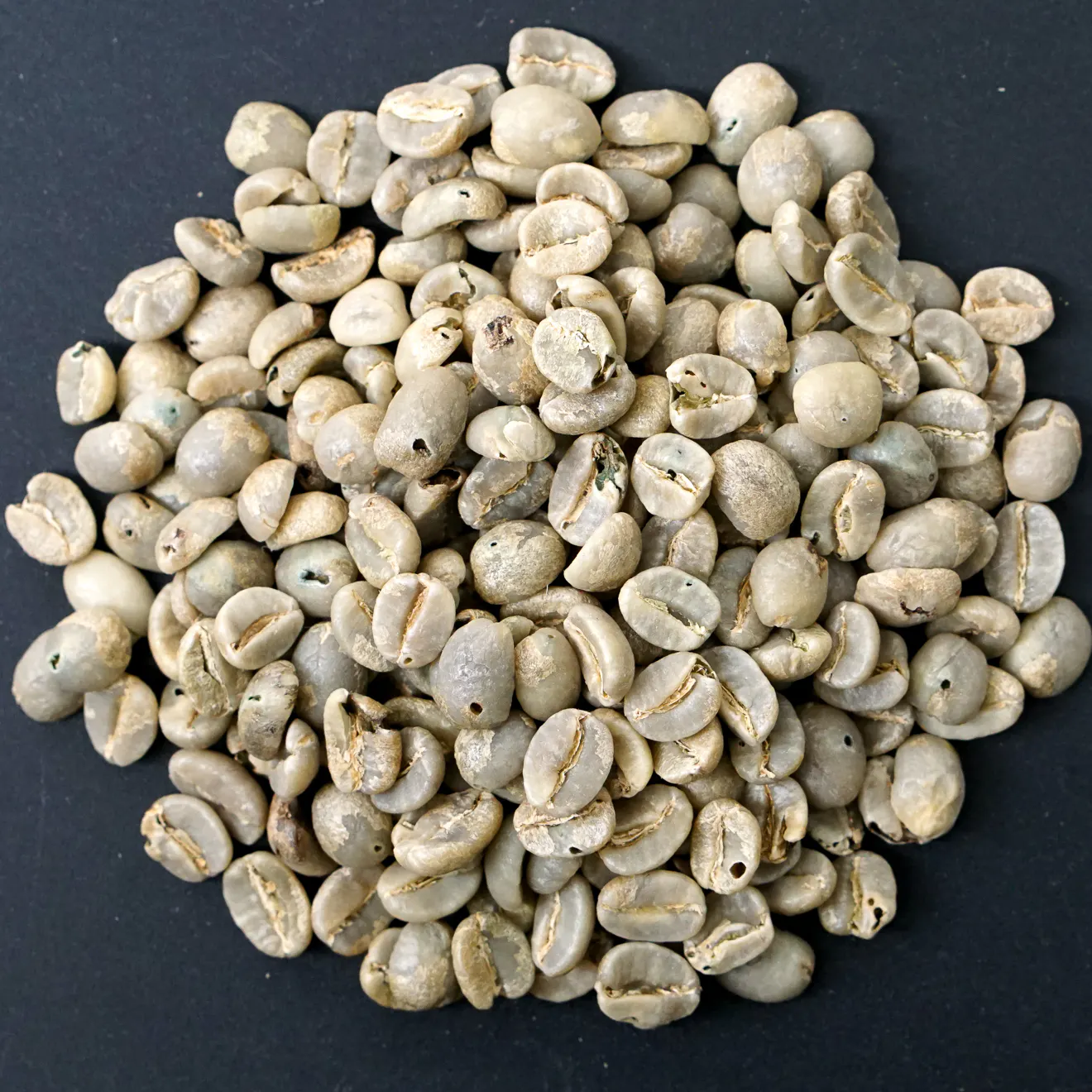 正しい知識のもと1粒1粒選別したベストな状態の生豆です、きれいな豆ですね。おいしさの下地はきちんとした生豆選別です。