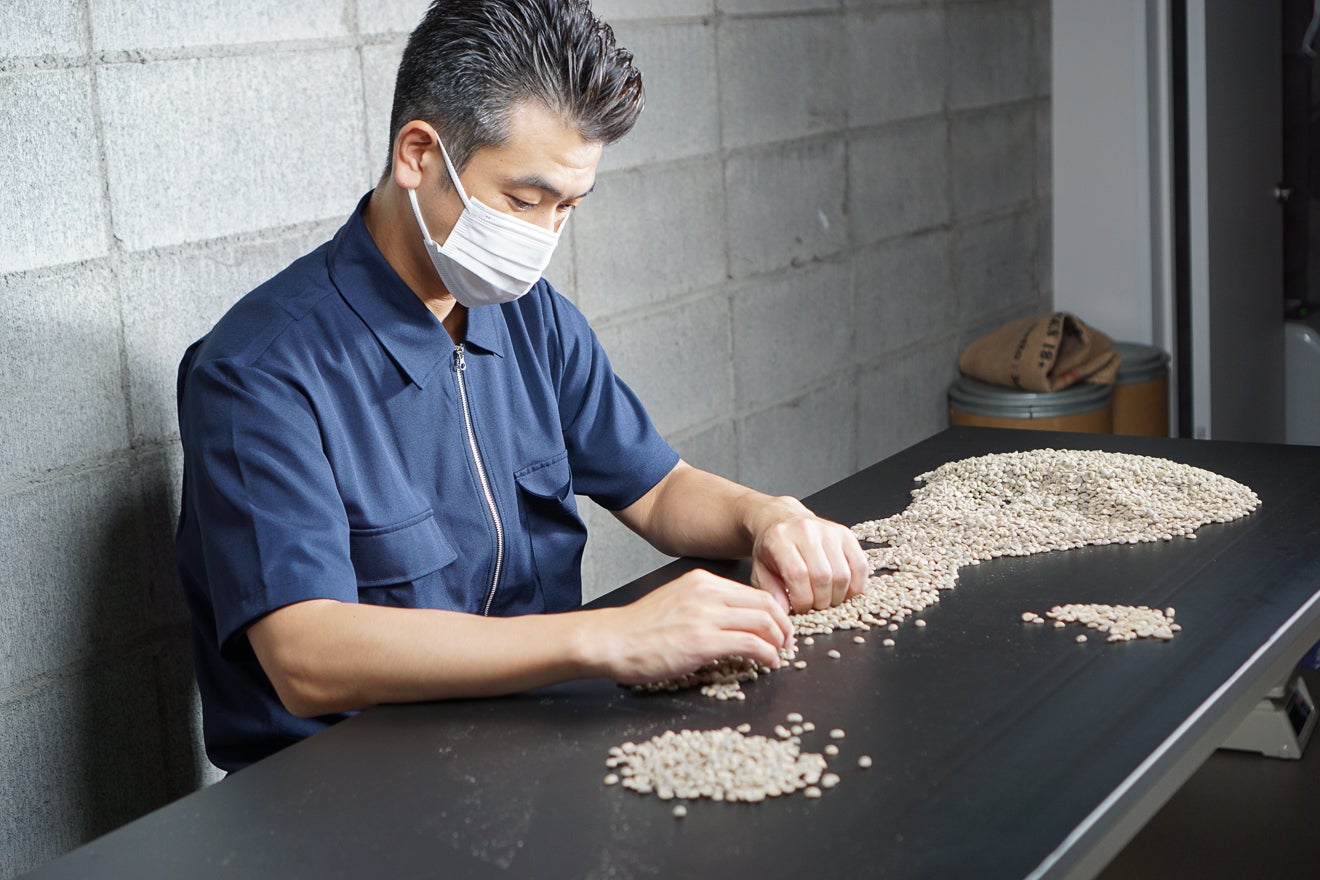 慣れてくると1時間で7kg程選別できるようになります。すべて1粒1粒人の手で選別します。さらに、選別作業は焙煎後も行います。