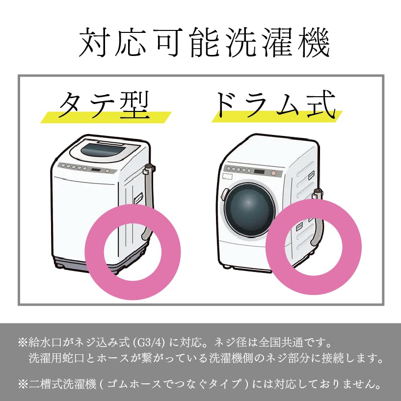 A.二槽式洗濯機には取り付けできません。また、海外メーカーなど、給水口ネジ径がG3/4ではない洗濯機は非対応となります。