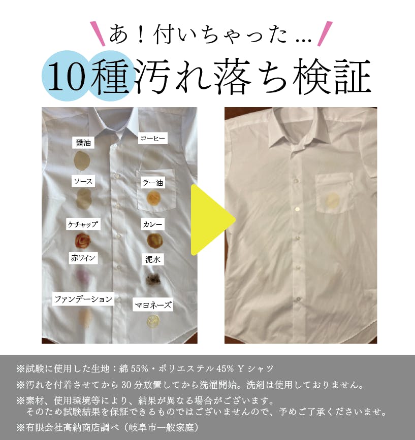 生活のなかで、注意していても付着してしまいがちな調味料やコーヒー、ファンデーションなどの落ちにくい汚れ。