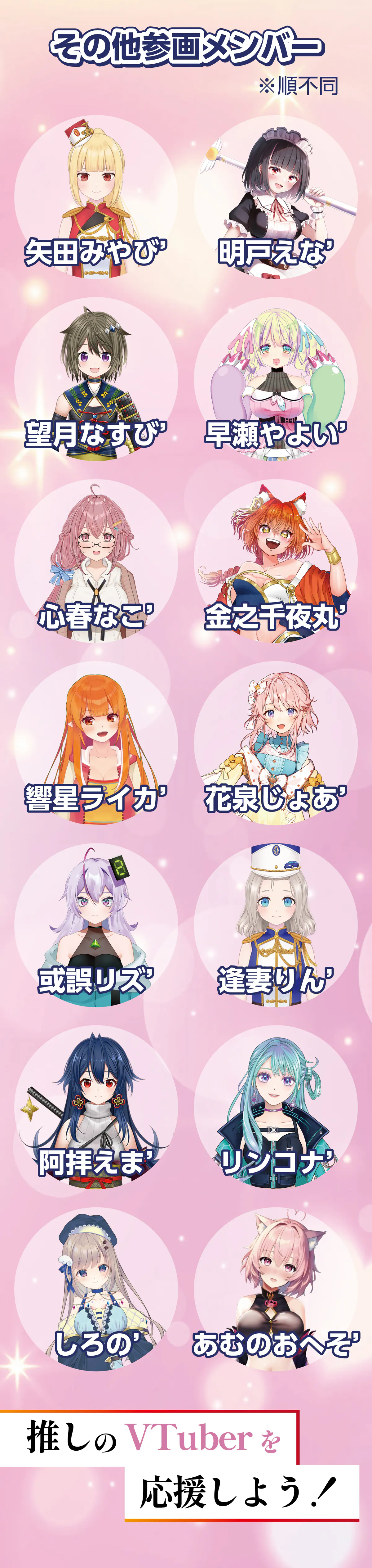 プロジェクトほぼ全員のVTuber'と1年間会話できる権利の対象者についてのご質問を受けました。17名のうち、15名が予定されておりますが、お名前を挙げると理由の問い合わせを誘導してしまいますので、お名前は控えさせていただきます。ご指名希望の方は、特定のVTuber'さんのリータンをお選びいただくことをお勧めいたします。