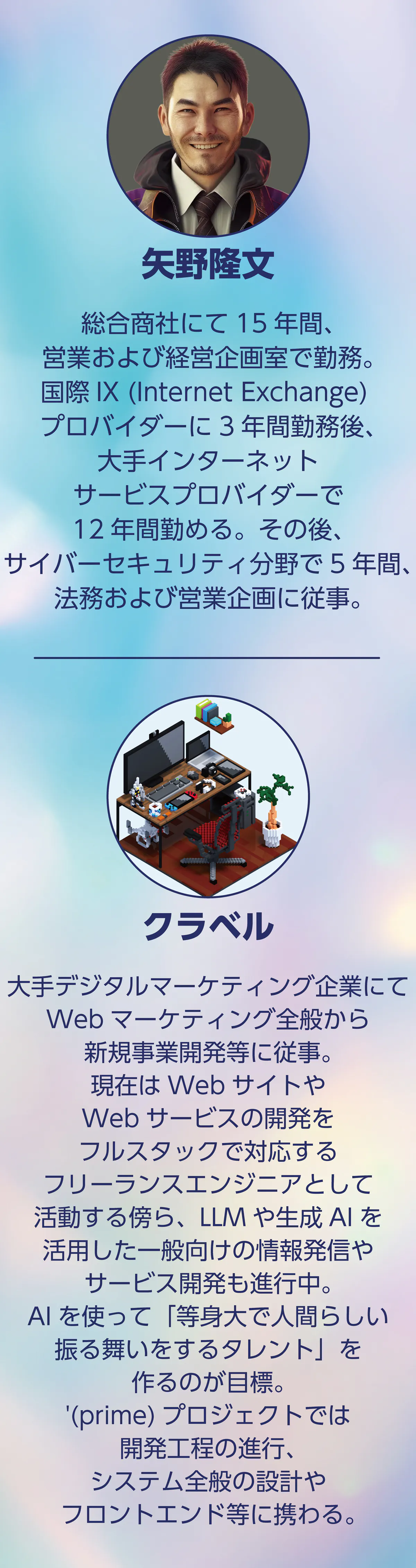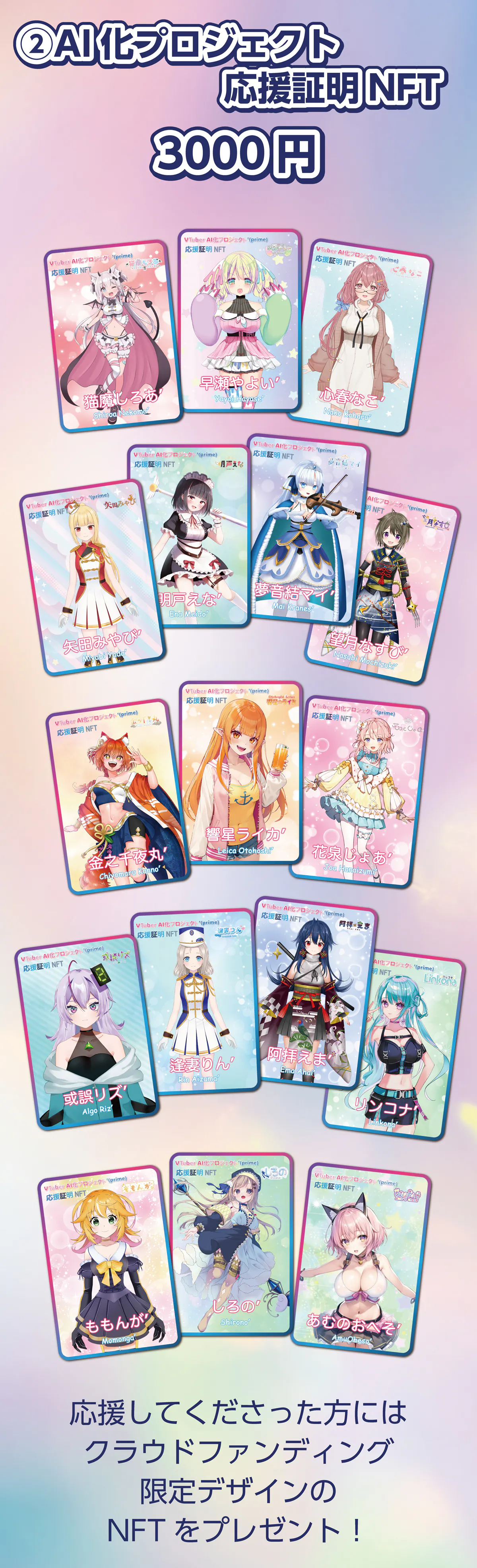 どうぞ、VTuber AI化プロジェクト ’(prime) へのご支援、ご期待をよろしくお願いいたします。