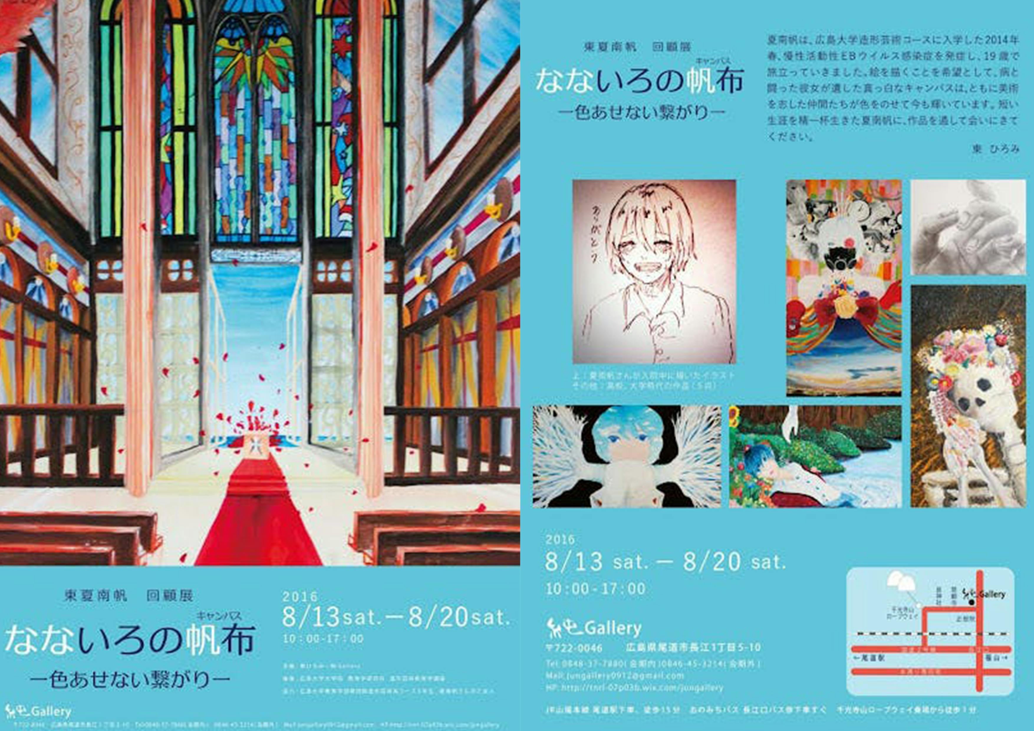 2016年夏、ななほちゃんの回顧展が尾道で開催されました。ななほちゃんが描きためていた作品を展示するとともに、病気の認知を広げる展覧会でした。