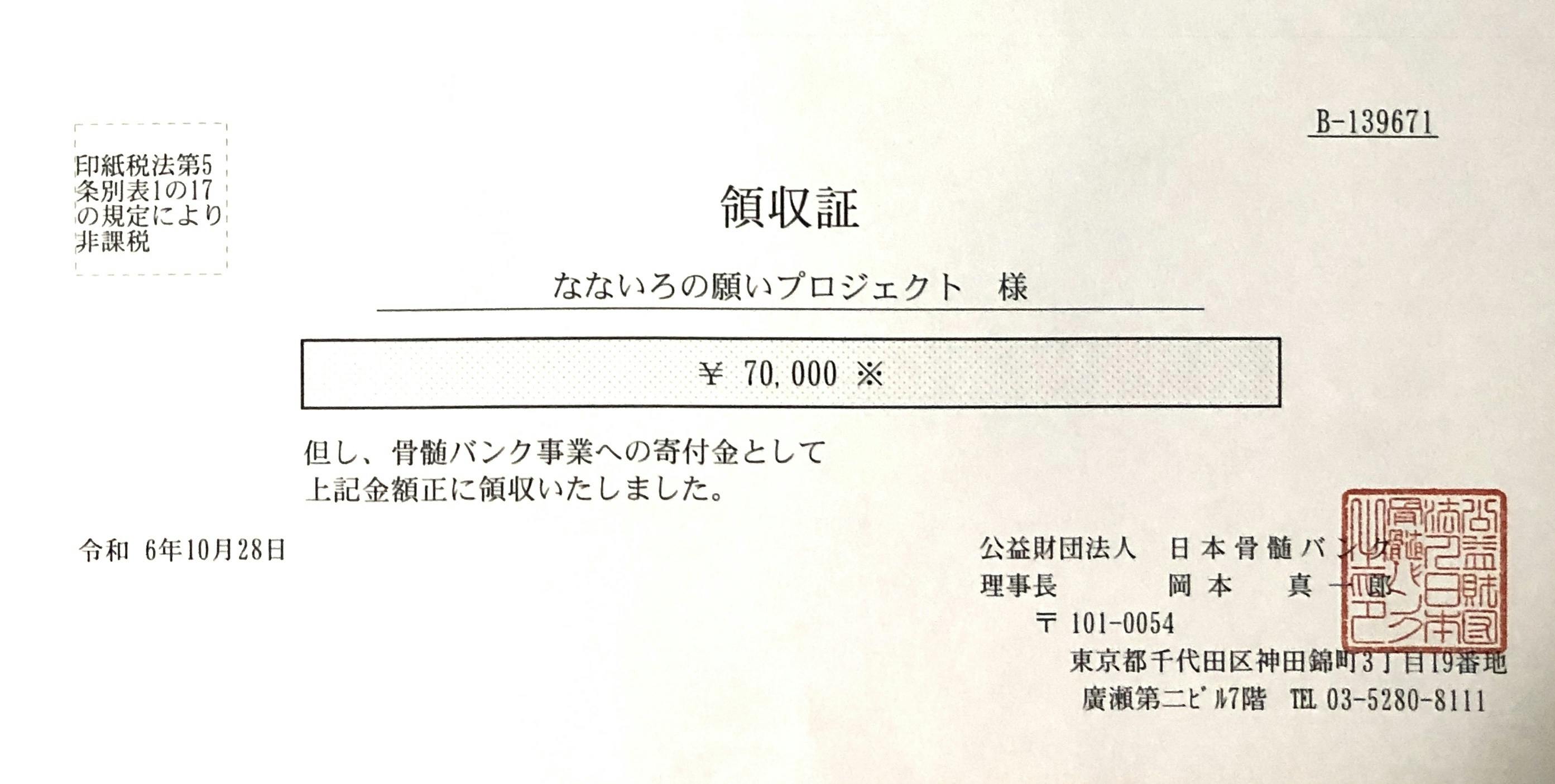 2024/11/23 15:20先月寄付をさせていただいた日本骨髄バンク様、そして、名古屋大学医学部様より、それぞれ領収書が届きましたので、ご報告させていただきます。骨髄バンクからの封筒に同封されていた寄付者への感謝・報告会(11月21日 YouTube)にも参加させていただき、どのようなことに寄付金が使われているのかも勉強させていただきました。少しでもお役に立てたなら幸いです。 もっと見る