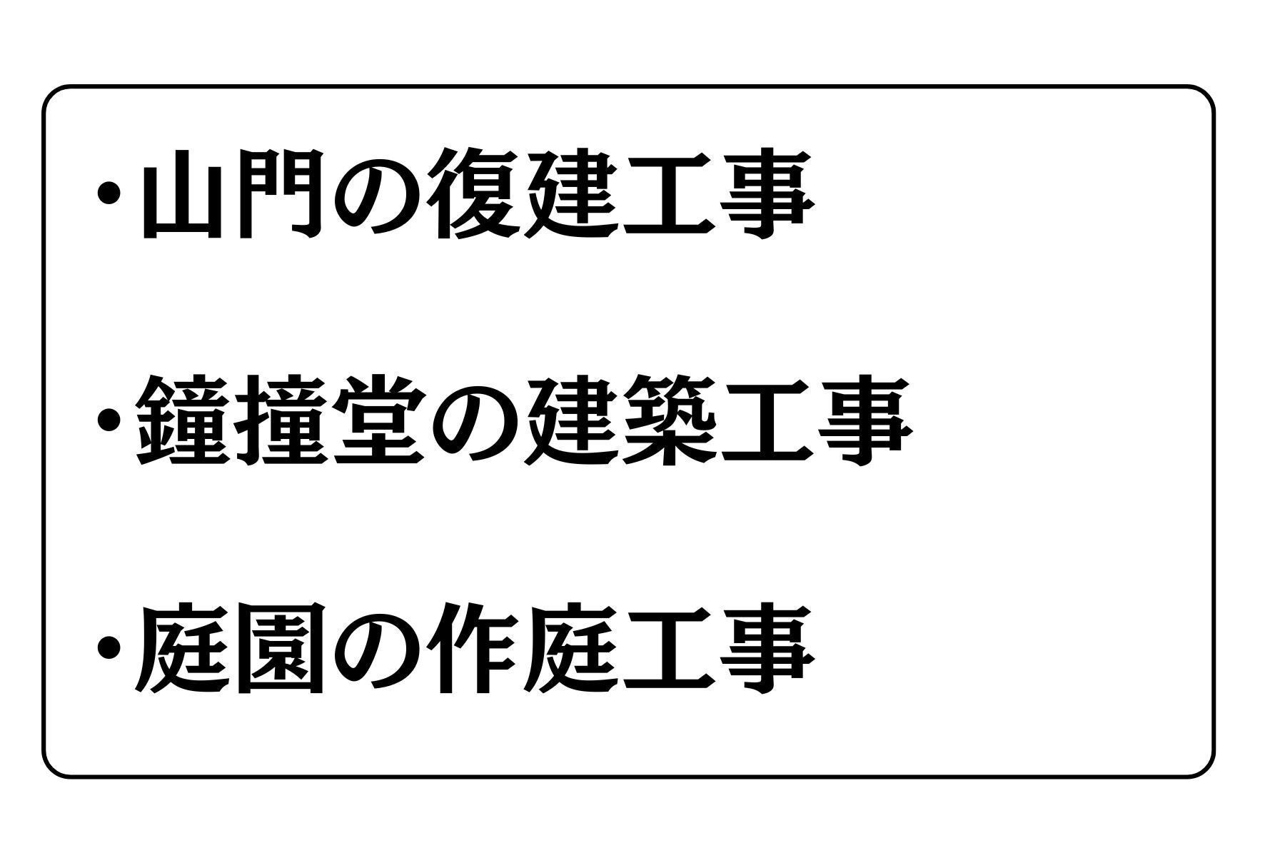 このプロジェクトで「満福寺令和大改修工事」に係る工事費用の一部に当てたいと考えております。