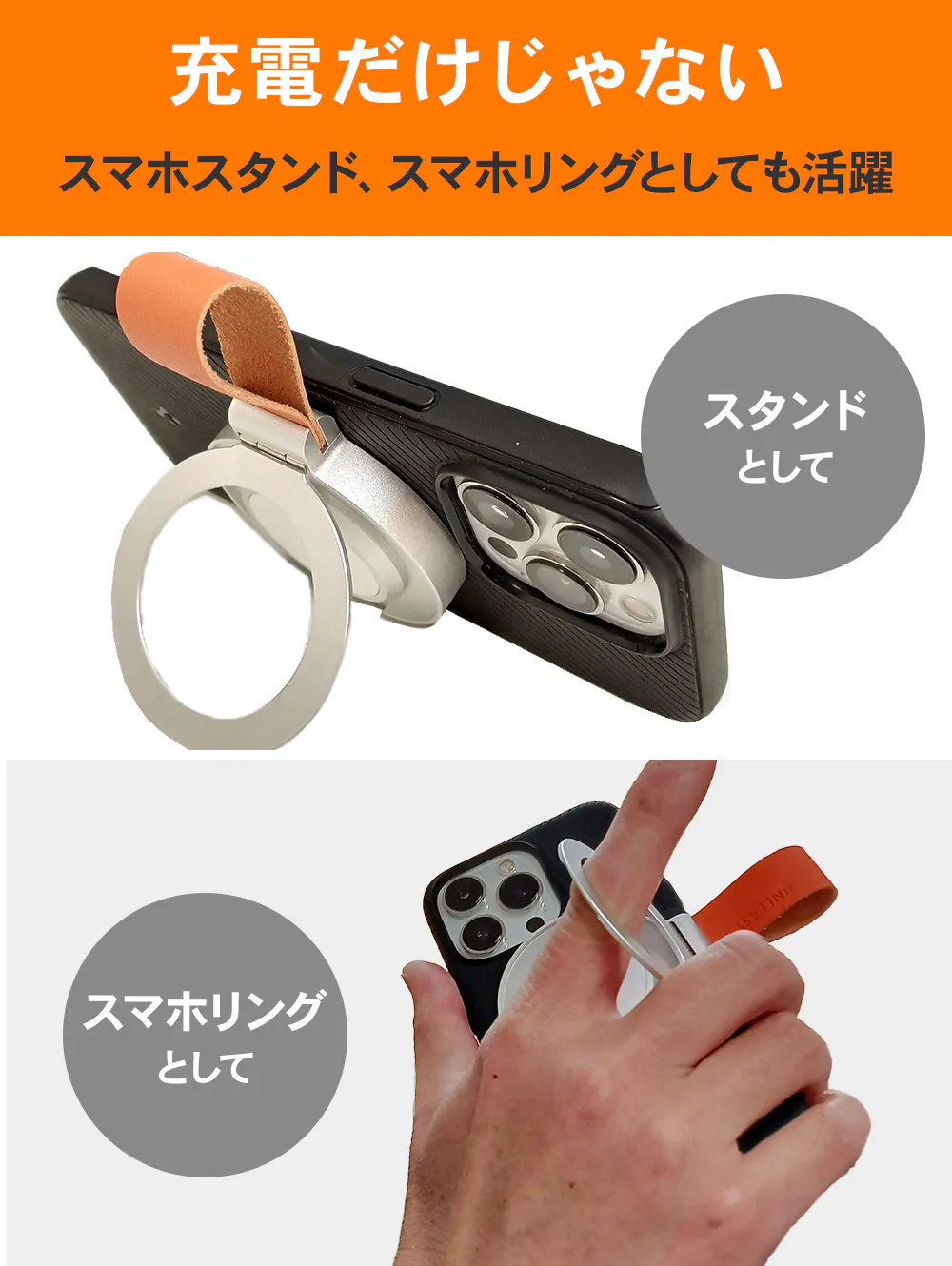 スマホへの貼り付けはMagSafeに対応したiphoneが必要です。