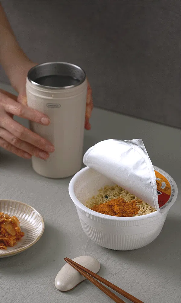 加熱後完全に停止した後にご飯やスープの元をお入れください。