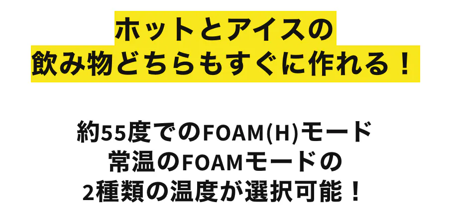 ・FOAM:約2分 液体の温度でフォームミルクを作ります。