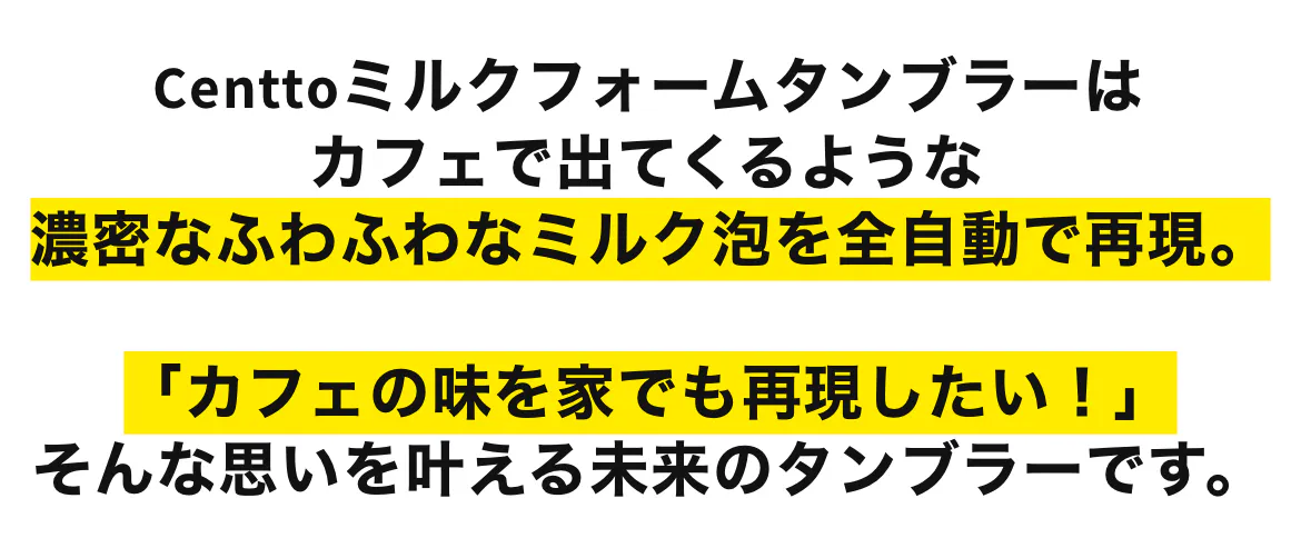 SDGsがトレンドとして挙げられる中、我々も何か世の中で「普通」と感じている無駄を解決したいと考えていました。そんな時にCenttoミルクタンブラーと出会い、家でも高品質なカフェドリンクが作れる事からカフェで排出されるゴミを少しでも減らせるのではないか、購入の度に感じる金銭的な負担を減らせるのではないかと思い、この商品を日本でプロデュースしようと決意しました。