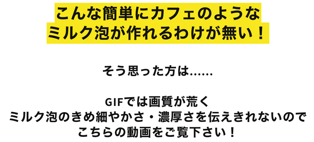 ③低脂肪、無脂肪、豆乳など牛乳の種類によっては泡が発生しにくい場合があります。