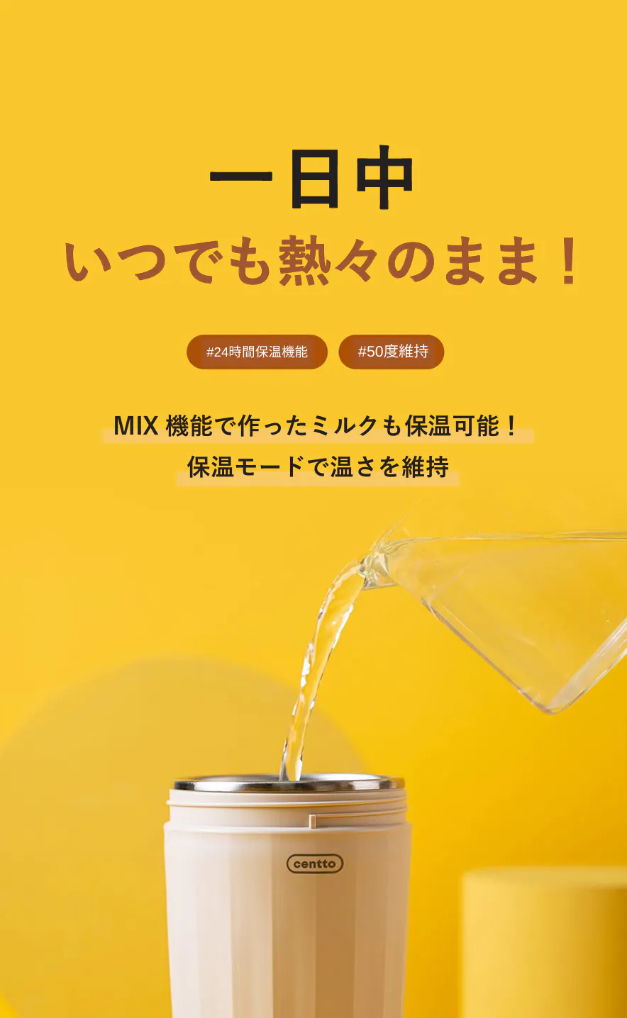 ・MIX:約3分 50度前後で温めながら粉末を溶かしながら液体を混ぜます。フォームミルクは出来ません。
