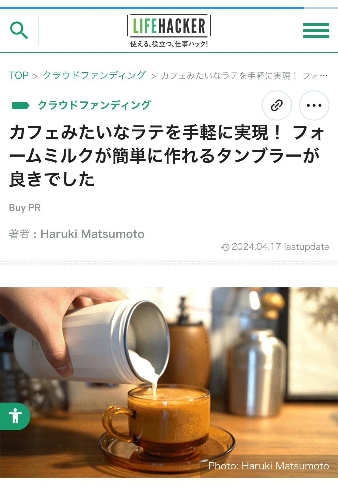 2024/04/18 15:26\ライフハッカーへ掲載されました!/実際にCenttoを使った感想を記事にしていただきました!カフェラテや豆乳抹茶ラテにも挑戦していただき上手く調理出来たようなので、ぜひチェックしてみて下さい!▼「カフェみたいなラテを手軽に実現! フォームミルクが簡単に作れるタンブラーが良きでした」https://www.lifehacker.jp/article/machi-ya-centto-review2-738928/ もっと見る