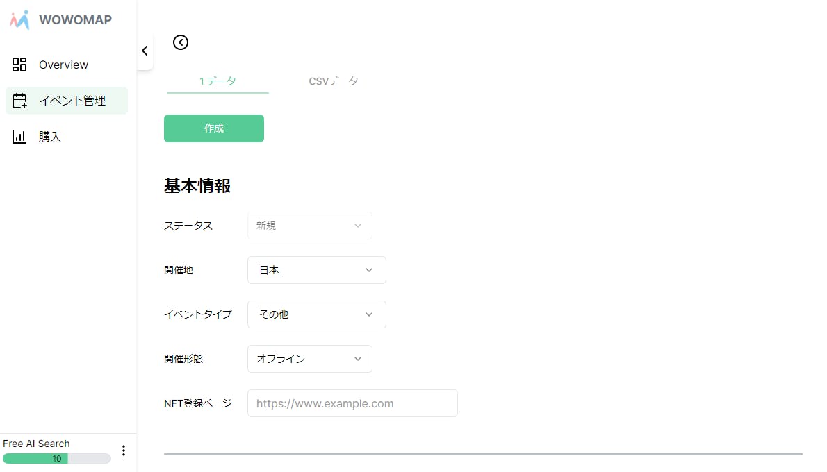 無料アカウントでは1回の操作で1つデータのみ登録可能ですが、有料アカウントではCSVデータを一括登録できる機能を提供します。これにより、大量のイベントデータを効率的にシステムにインポートすることができ、時間と労力を大幅に削減します。データ管理がより柔軟に、速やかに行えます。