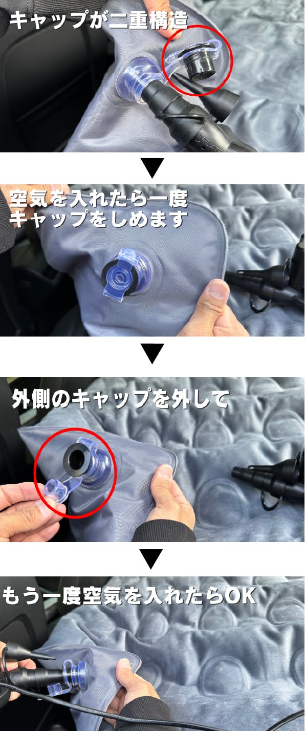 30秒ぐらいで空気入れは完了、60秒で睡眠が可能な状態へ安定します。