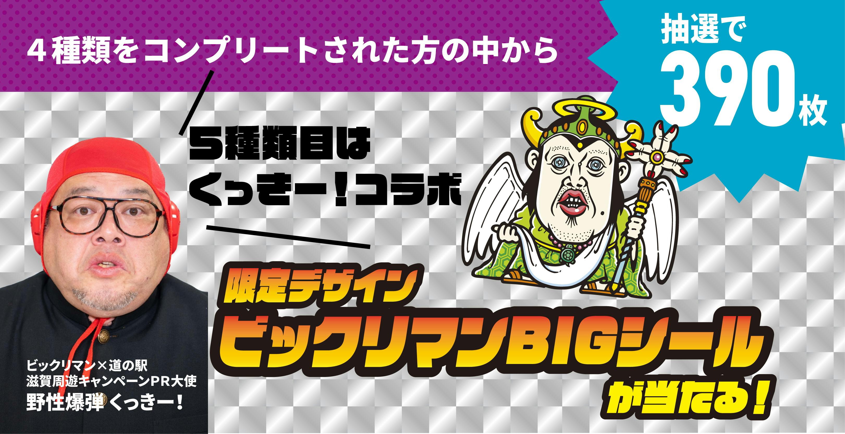キャンペーン期間中、滋賀県内の有人道の駅で合計2,000円(税込)以上のお買い物、ご飲食をされた方を対象に、今回限定のビックリマンBIGシールをプレゼント致します。