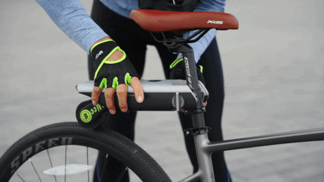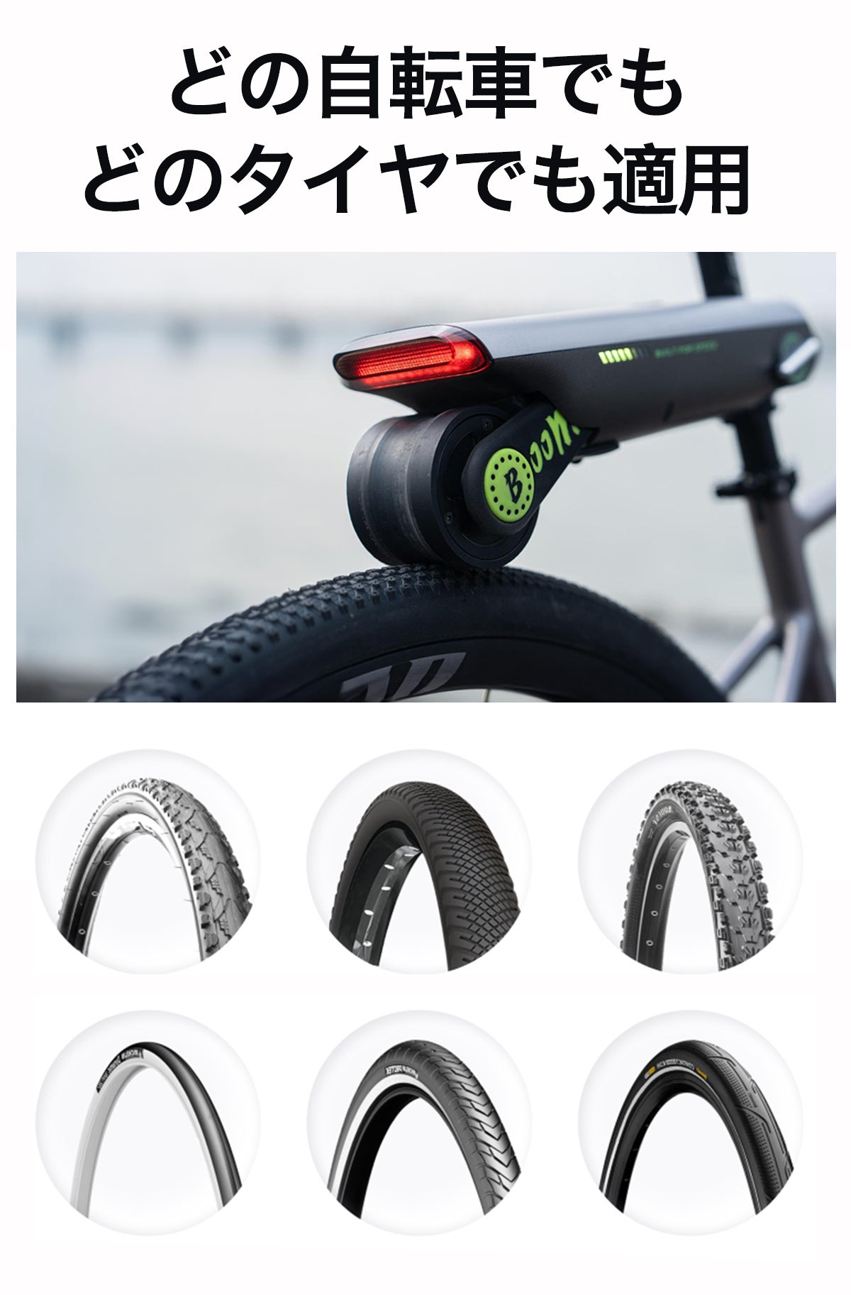取り付け位置が正しければ、デバイスの車輪が自転車のタイヤにしっかりとフィットします。さらに、デバイスの車輪はゴム製なので、自転車タイヤと接触するときの摩擦力は非常に大きく、空転することはありません。