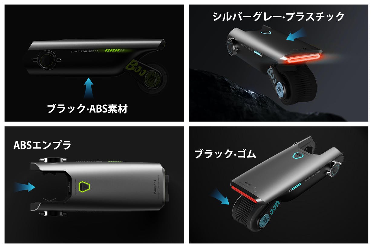 デバイス本体はABS素材とプラスチックで構成されます。表面は特別な加工技術で処理され、美しさと耐久性を兼ね備える。取り付け部分はABSエンプラで作られており、より丈夫で耐久性があり、腐食に強いです。また、ホイール部分は耐摩耗性があるゴム材料で作られており、長寿命で使用できます。